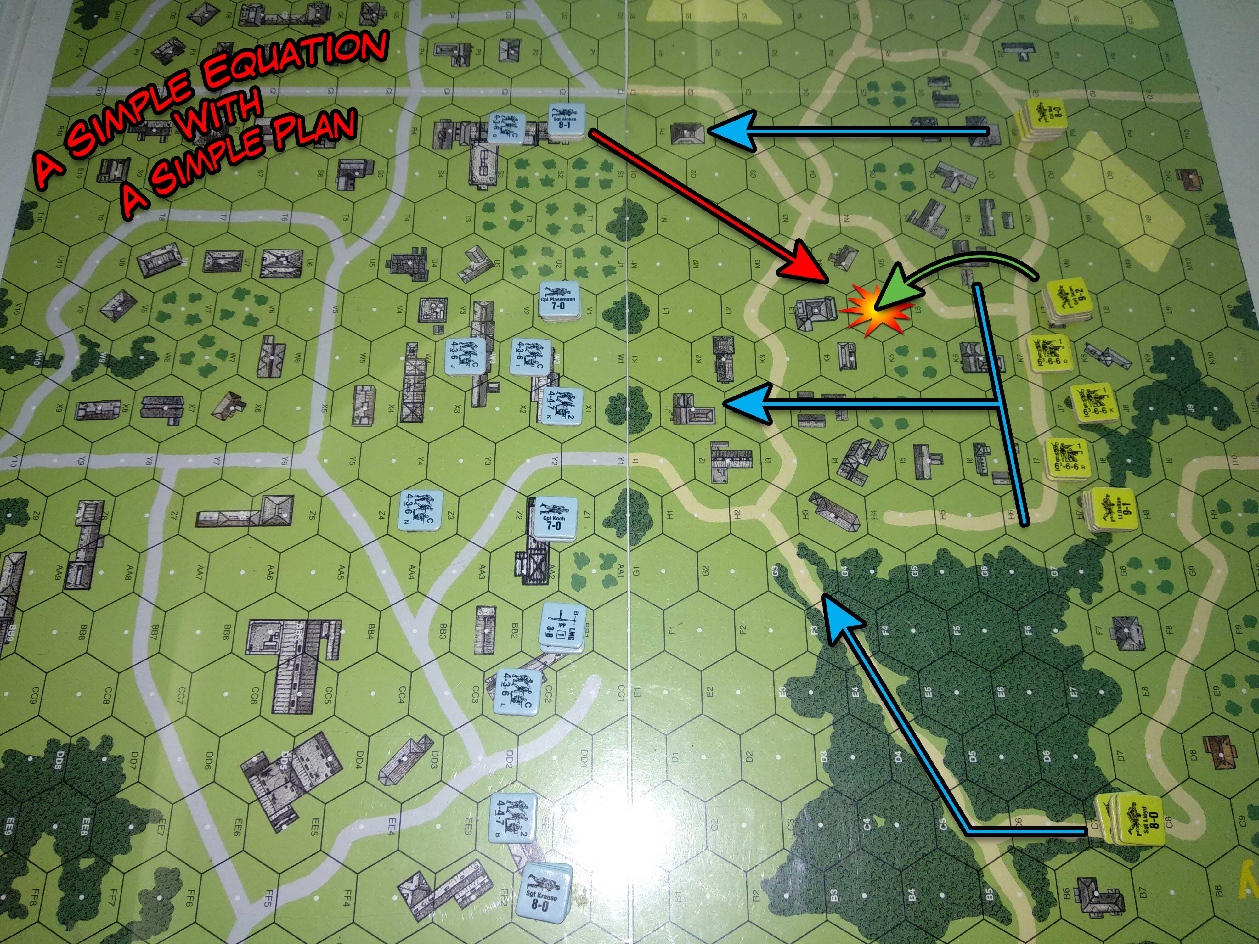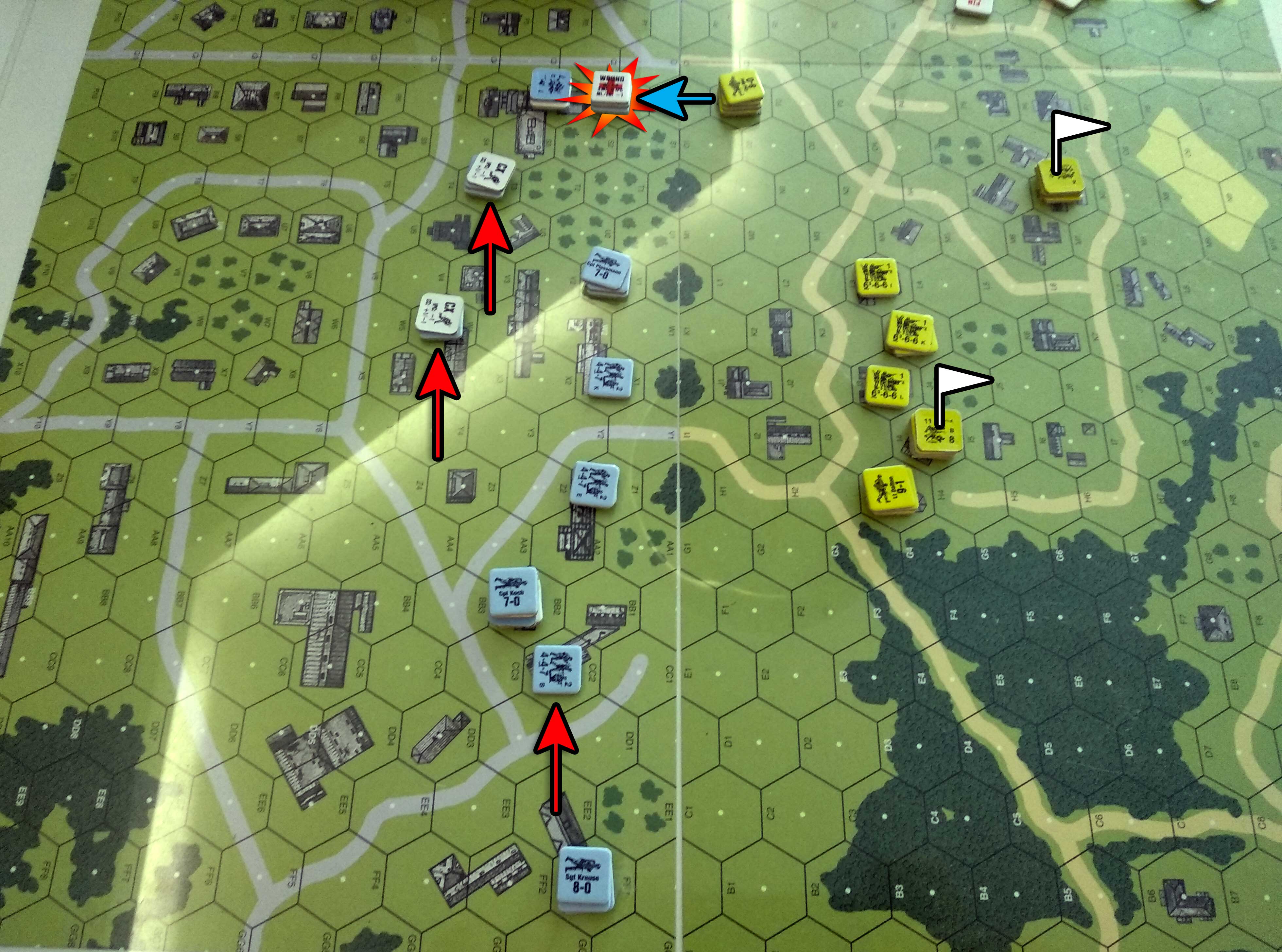 My US forces “only” needed to control 25 building hexes over the crease of the map. No small feat for sure and the battle isn’t over. But it’s probably not far off. A rookie error led to the devastation of an important stack on the first turn of the game and I’ve been trying to recover from that SNAFU ever since.